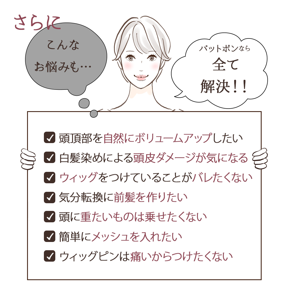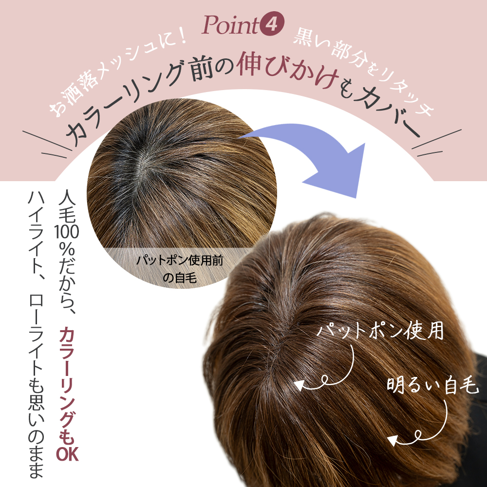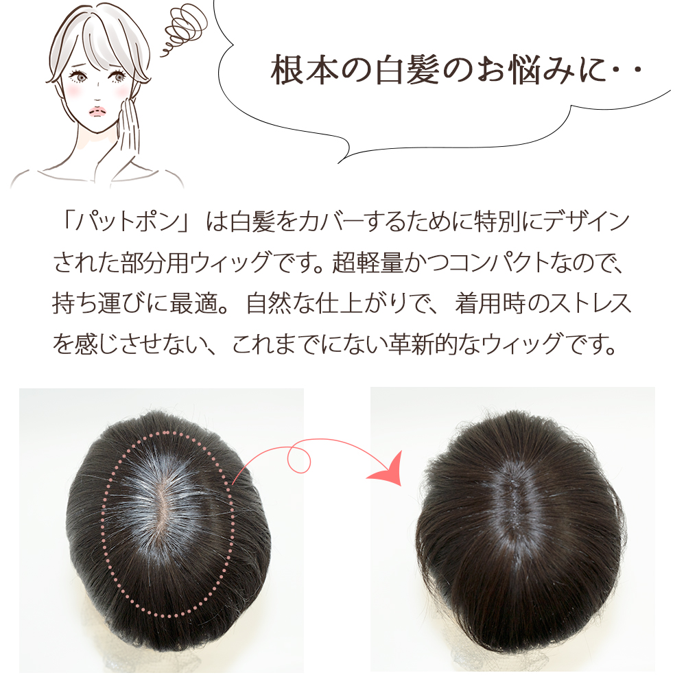 「パットポン(PP02)」は、人毛100%の自然な見た目と使いやすさを兼ね備えた部分かつらです。